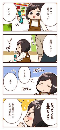 子供が処方される薬は粉薬なのですが、大人が飲む錠剤の形の薬に憧れがあるようで(笑)ラムネやチョコベビー(小粒チョコ)をこれはお薬なの~、といって飲んで(食べて)ます(*ノωノ)でも錠剤=大人、の感覚は私も覚えがあります~('ω')